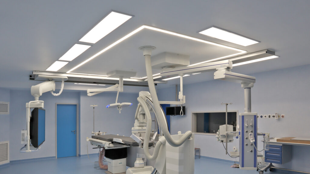 Para as salas mais restritas, onde os profissionais de saúde requerem elevada concentração e precisão, optamos pelo Quadro Embutido. Estas luminárias oferecem uma iluminação direcionada e uniforme, essencial para o desempenho adequado das tarefas médicas e cirúrgicas.